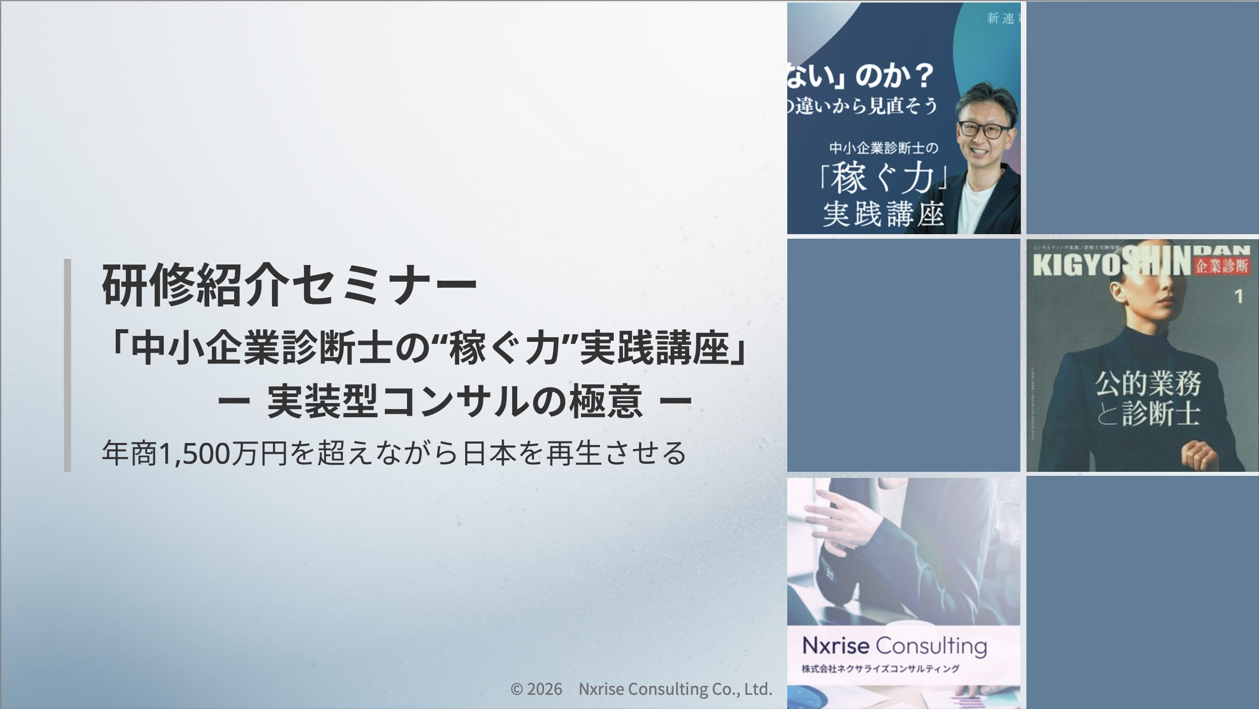 | 2026年1月21日 | 「企業診断」連載コラム/ 中小企業診断士の「稼ぐ力」実践セミナー | ネクサライズコンサルティング | オンライン |