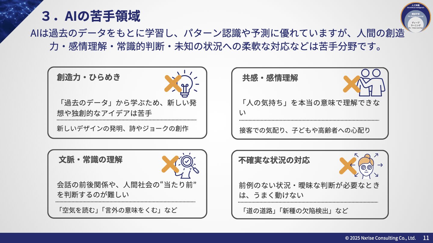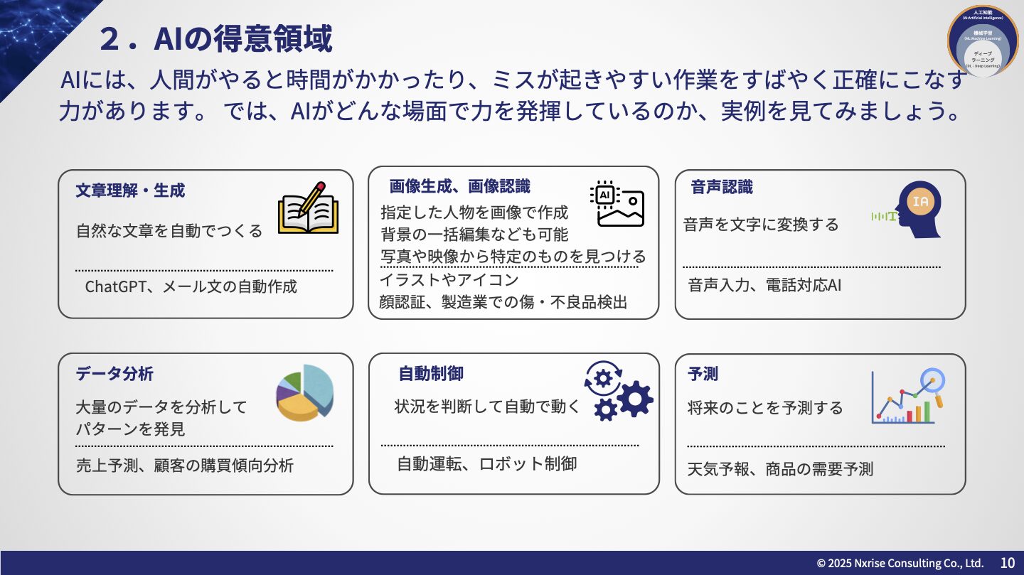 • AI・生成AIの仕組みと進化(予測型AIと生成型AIの違い)