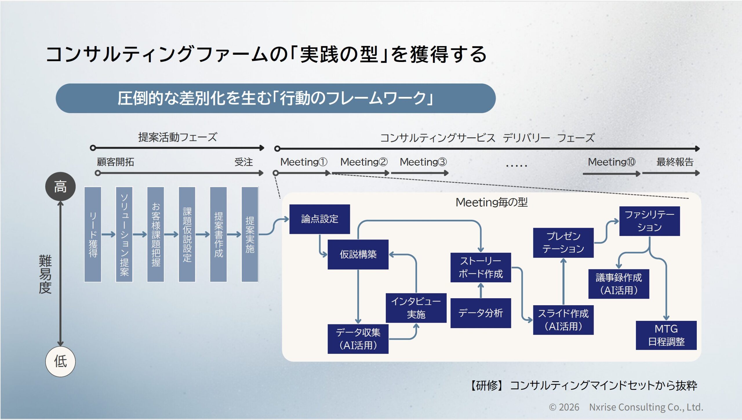 • 案件を獲得するための提案方法、コンサルティングサービスのデリバリー方法